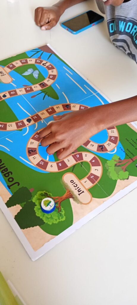A atividade central do projeto foi o “Jogo de Tabuleiro dos Rios”. Desenvolvido pelas próprias estagiárias como parte de seu trabalho de conclusão de estágio, o jogo simula o percurso de um rio, apresentando aos participantes os desafios ambientais e as ameaças que impactam diretamente o ecossistema aquático local. O objetivo é promover a reflexão e o aprendizado de forma participativa, indo além da simples transmissão de informações.